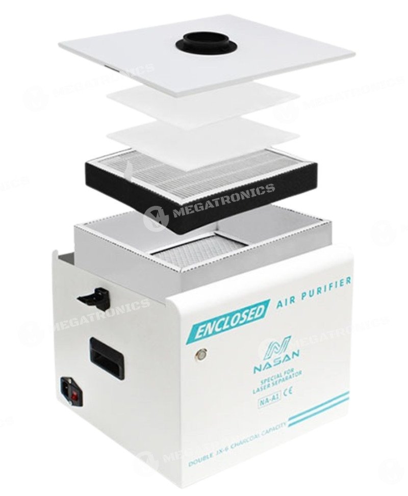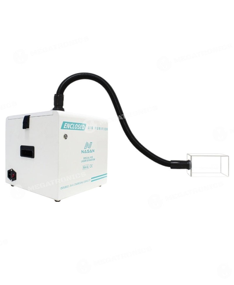 El Extractor de Humo NASAN NA‑A1 es un purificador de aire sólido y compacto, ideal para talleres y laboratorios técnicos. Está diseñado para eliminar humo, polvo fino y olores generados por procedimientos como la reparación con láser de pantallas, soldadura de PCBs y CPUs. Su diseño de escritorio y su caja de acrílico garantizan un entorno de trabajo limpio y seguro.